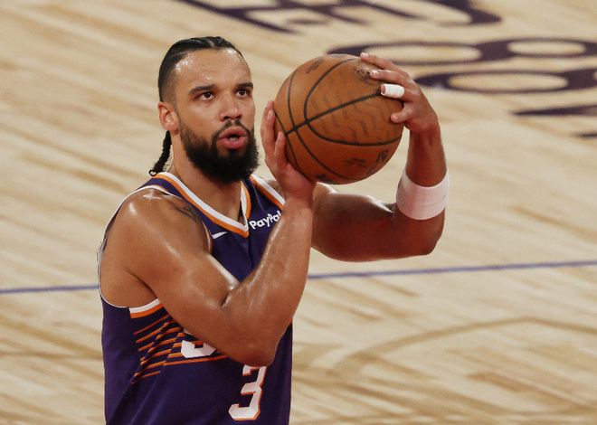 太阳队这边,布克投篮12中4,三分5中3砍下18分5板5助攻1抢断;狄龙6犯离场,9中4拿到12分2篮板1助攻。